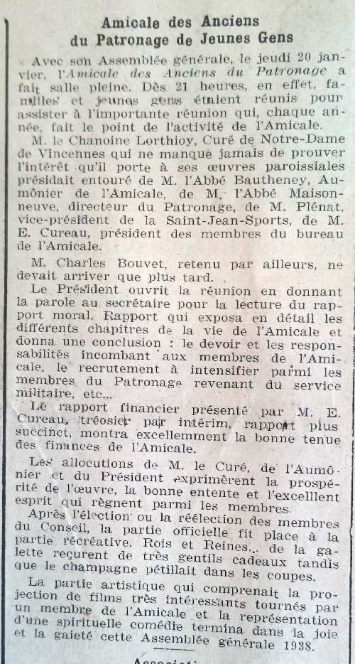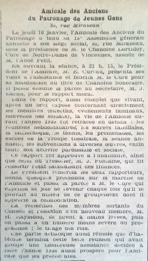 Toutes les assemblées générales de l'Amicale des Anciens du patronage avaient lieu au 35 rue Mirabeau