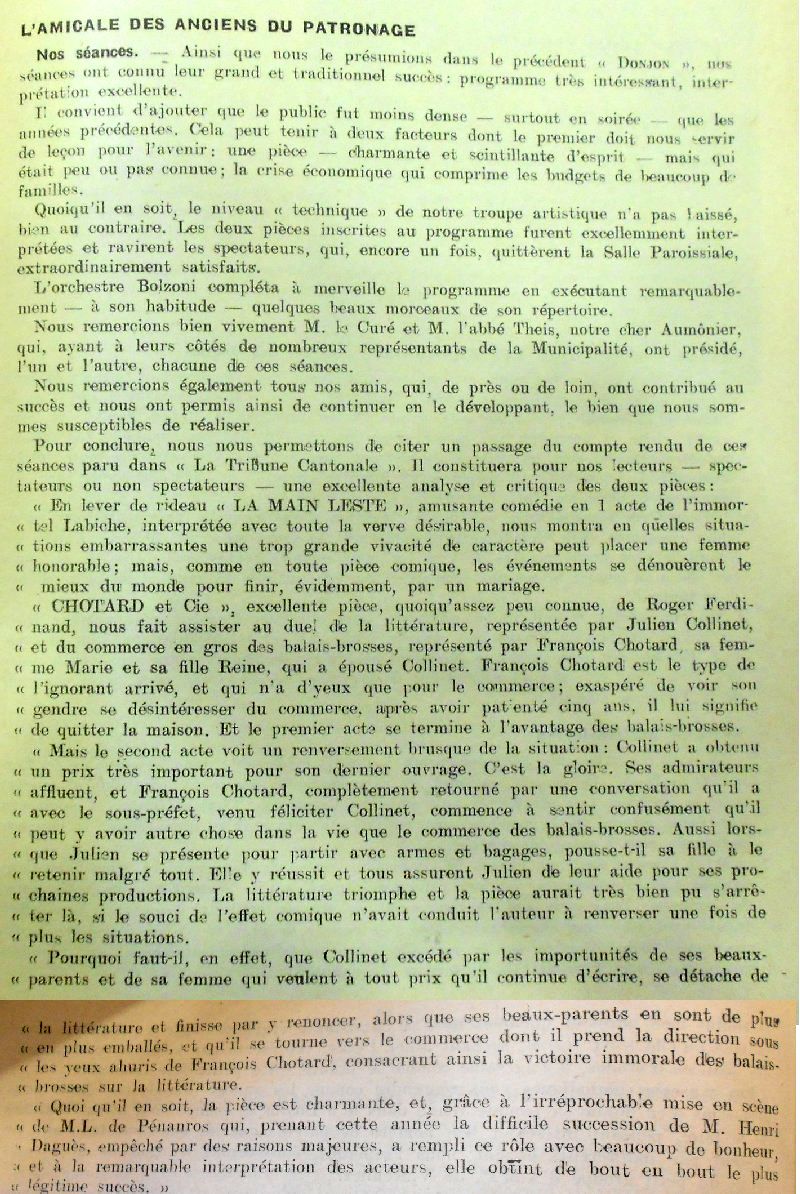 Le journal Le Donjon rappelait également l'interprétation d'Un Chapeau de Paille d'Italie le 29 mai 1932.