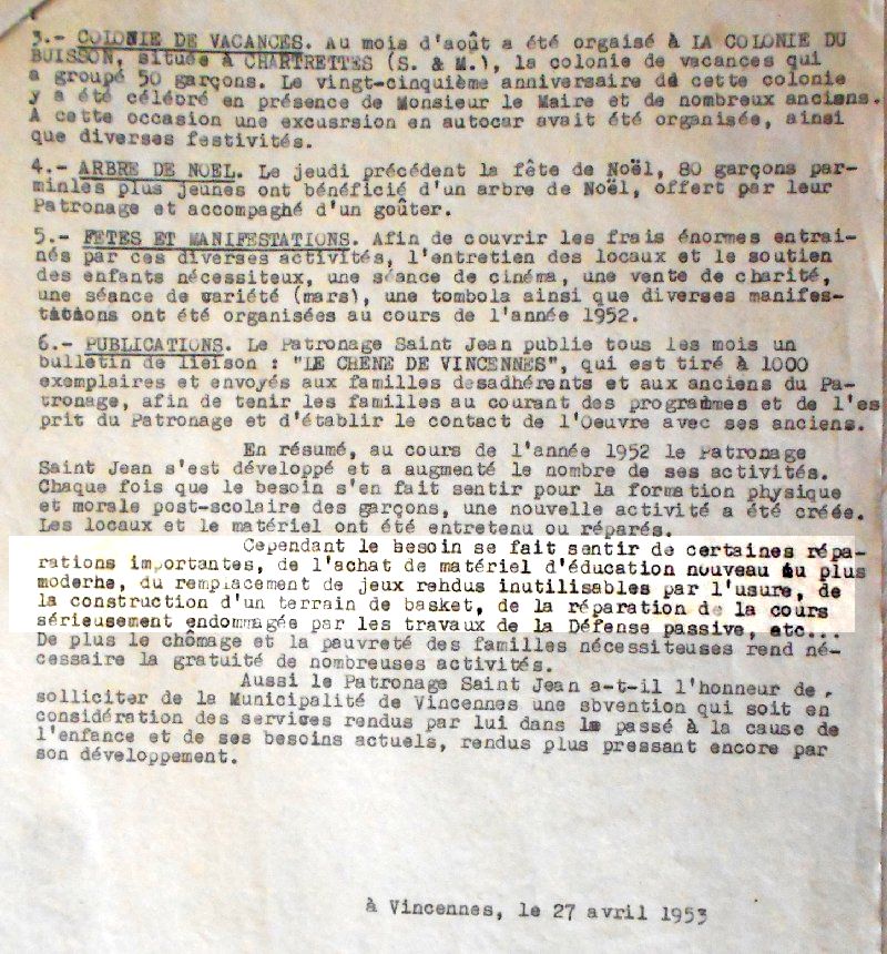 Dans le rapport moral du patronage Saint -Jean pour l'année 1953,